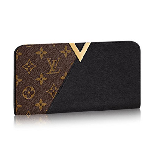 The striking Kimono Wallet combines iconic Monogram canvas and colourful calf leather for a graphic design. The eye-catching golden V signature, inspired by a vintage Louis Vuitton advertising campaign, gives a perfect finish to this feminine wallet.